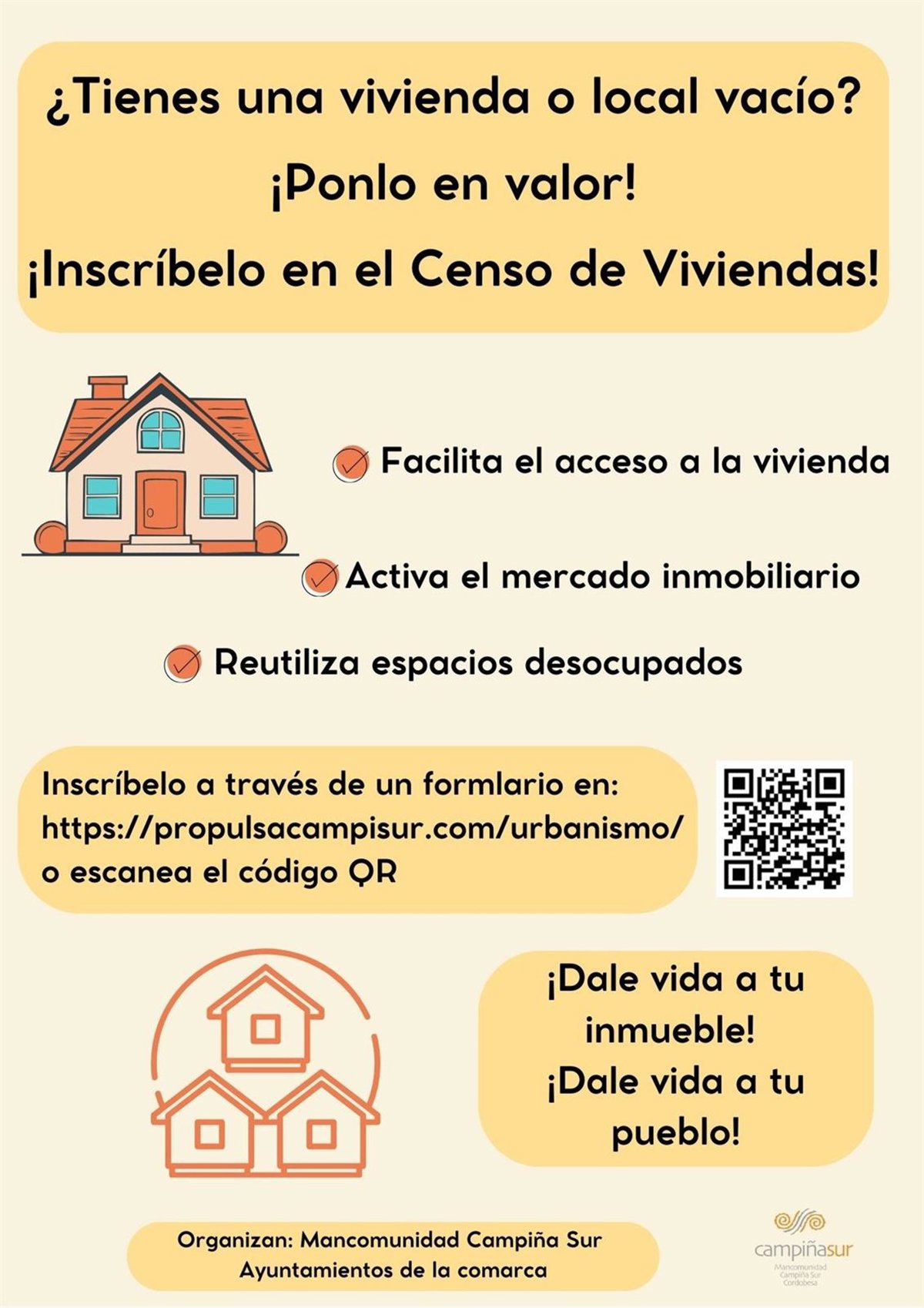 Cartel del Censo de Viviendas y Locales Vacíos de la Campiña Sur Cordobesa. - MANCOMUNIDAD DE LA CAMPIÑA SUR
