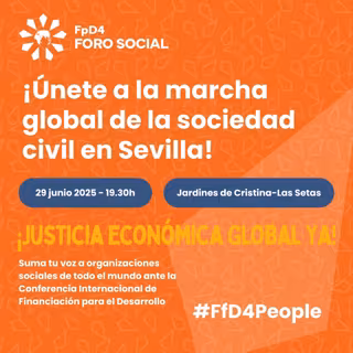 Más de 1.500 personas, procedentes de organizaciones sociales de todo el planeta, están convocadas a movilizarse este domingo, 29 de junio, en Sevilla en una manifestación que pondrá "el broche final" al Foro Social de la IV Conferencia Internacional de Financiación para el Desarrollo (FfD4), que se celebra este fin de semana en el Hotel Meliá Sevilla y reúne a representantes de la sociedad civil en paralelo a la cita oficial de delegaciones de 150 países, prevista a partir del lunes.