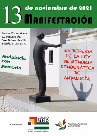 La Coordinadora Andaluza por la Memoria Histórica y Democrática y la Asamblea Memorialista Andaluza han convocado una manifestación este sábado, 13 de noviembre, en Sevilla en defensa de la Ley de Memoria Histórica y Democrática de Andalucía y en recuerdo de las víctimas del golpe y la dictadura franquista.