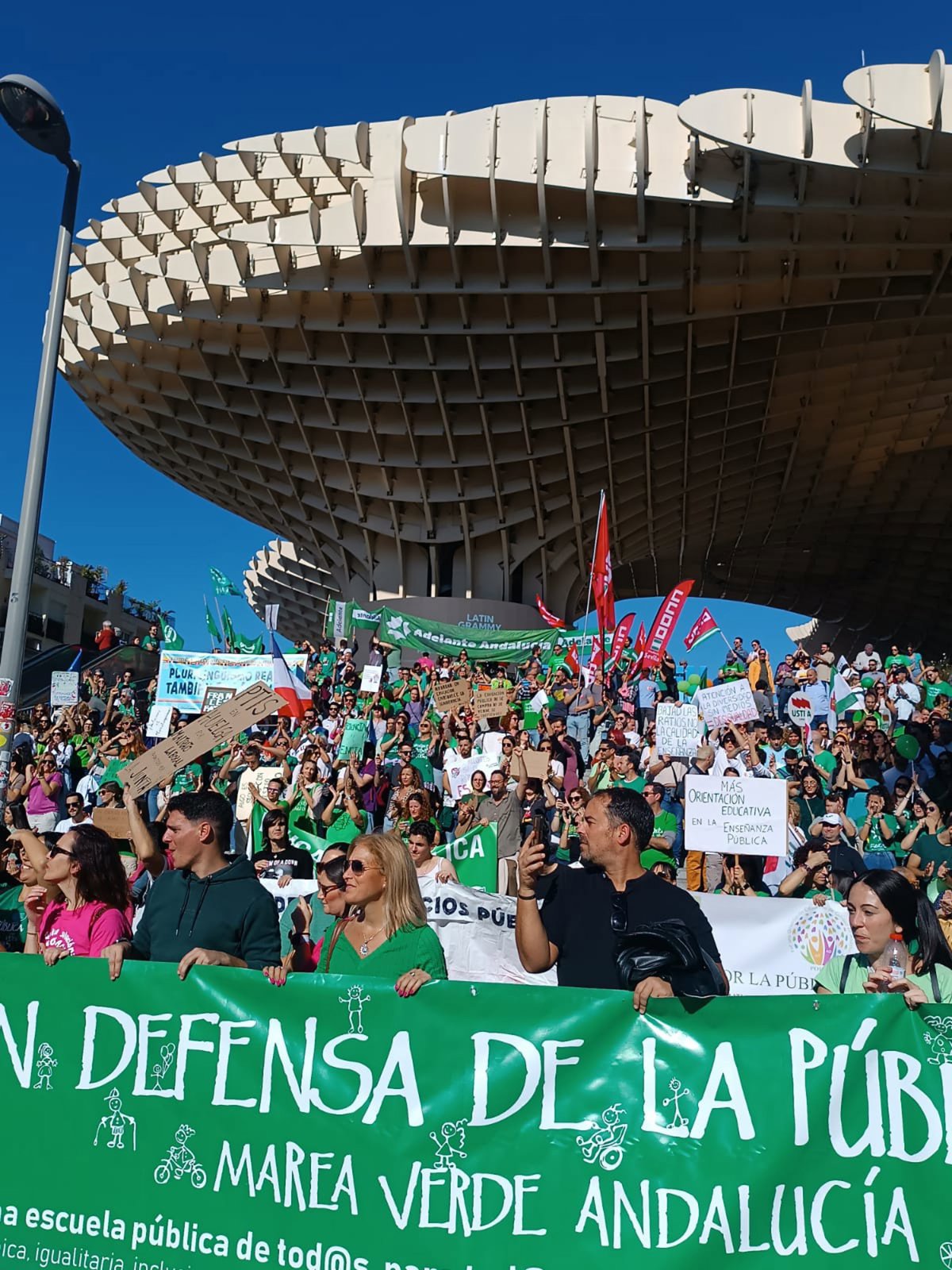 La Marea Verde Andaluza protagoniza este sábado concentraciones en las provincias de Cádiz, Málaga y Sevilla para exigir una "mejora" tanto en los centros educativos públicos, sobre los que alerta de su "deterioro", como de la situación laboral del profesorado andaluz. Bajo el lema 'Nos están robando la educación pública', este colectivo reclamará "derechos que dignifiquen la labor" de los profesores.