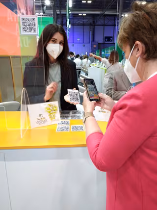 La presidenta de la Campiña Sur Cordobesa, Francisca Carmona (dcha.), escanea uno de los códigos QR. - MANCOMUNIDAD CAMPIÑA SUR