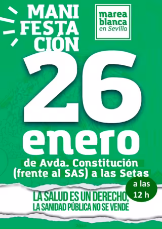La Marea Blanca en Sevilla, junto a las Mareas Blancas de otras provincias andaluzas, convocan a la ciudadanía para el próximo día 26 a manifestaciones en defensa de la sanidad pública, ya que tanto profesionales como usuarios "manifiestan su frustración ante una realidad que nada tiene que ver con las promesas de planes de choque y otras medidas anunciadas por el gobierno del PP y Ciudadanos con el apoyo de Vox".