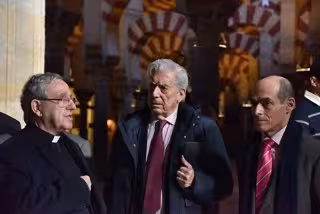 El escritor peruano y Premio Nobel de Literatura Mario Vargas Llosa ha visitado en la mañana de este viernes la Mezquita-Catedral de Córdoba y ha realizado una ofrenda floral en honor a la figura del Inca Garcilaso de la Vega, cuyos restos mortales descansan en la capilla de las Ánimas del Purgatorio.
