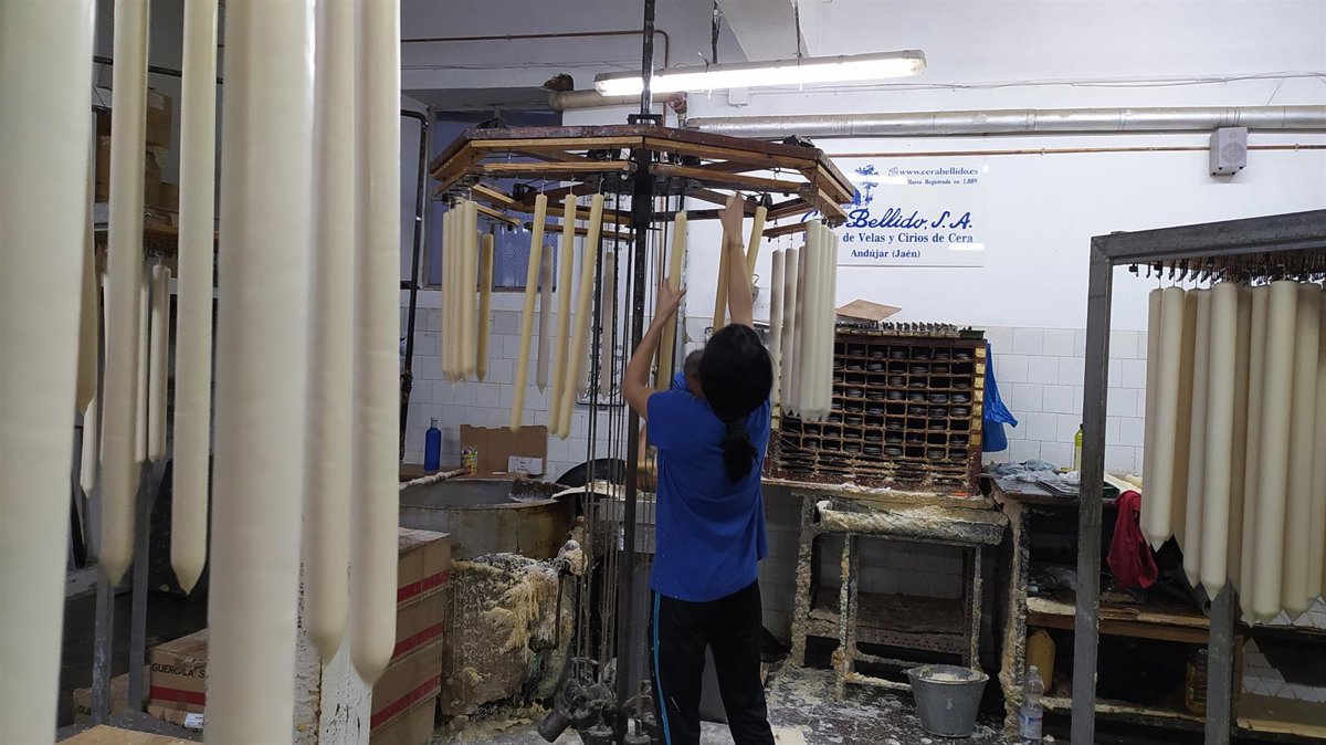 Más de 100.000 kilos de cirios, hachones y otros tipos de vela están saliendo desde la centenaria empresa Cera Bellido SA, ubicada en Andújar (Jaén), para iluminar procesiones y cultos de la Semana Santa repartidos por toda España.