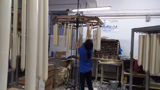 Archivo - Una trabajadora de Cera Bellido cuelga cirios. - CERA BELLIDO - Archivo