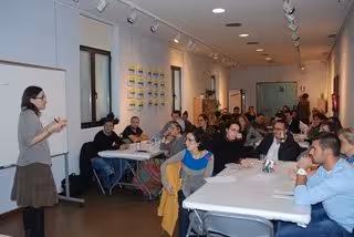 Durante la jornada del lunes, tras una charla ofrecida por el responsable de comunidad de Impact Hub Madrid, Javier Gárriz, se debatió sobre cómo reunir a personas en torno a una misión compartida, después del taller de medición de impacto social.