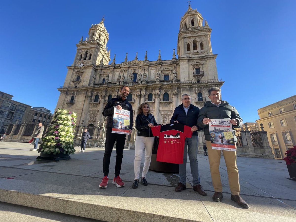 El concejal de Deportes del Ayuntamiento de Jaén, Chema Álvarez, acompañado por el vicepresidente del Club Atletismo Quiebrajano, Juan José Valenzuela, y María José Extremera, presidenta de la Asociación Asdefav 'Una esperanza para Celia', ha presentado la XXVII Subida al Castillo de Santa Catalina de Jaén, que se celebrará el próximo domingo 31 de diciembre a partir de las 16,30 horas con la participación de más de 400 corredores.