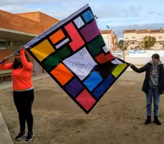 Estudiantes presentan una bandera creada para el 36 concurso escolar del Grupo Social ONCE - ONCE