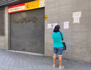 Una persona observa uno de los carteles con instrucciones para hacer trámites por internet colocados en la fachada de una oficina del SEPE el día en el que se conocen los datos del paro de junio, en Madrid (España), a 2 de julio de 2020. - Eduardo Parra - Europa Press - Archivo