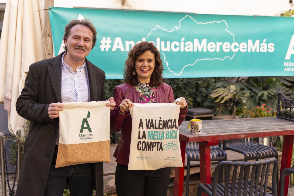 El concejal de Movilidad Sostenible del Ayuntamiento de Valencia, Giuseppe Grezzi, y la presidenta de Más País Andalucía, Esperanza Gómez, este sábado en Sevilla en las jornadas 'Retos de la Política Municipal'. - MÁS PAÍS ANDALUCÍA