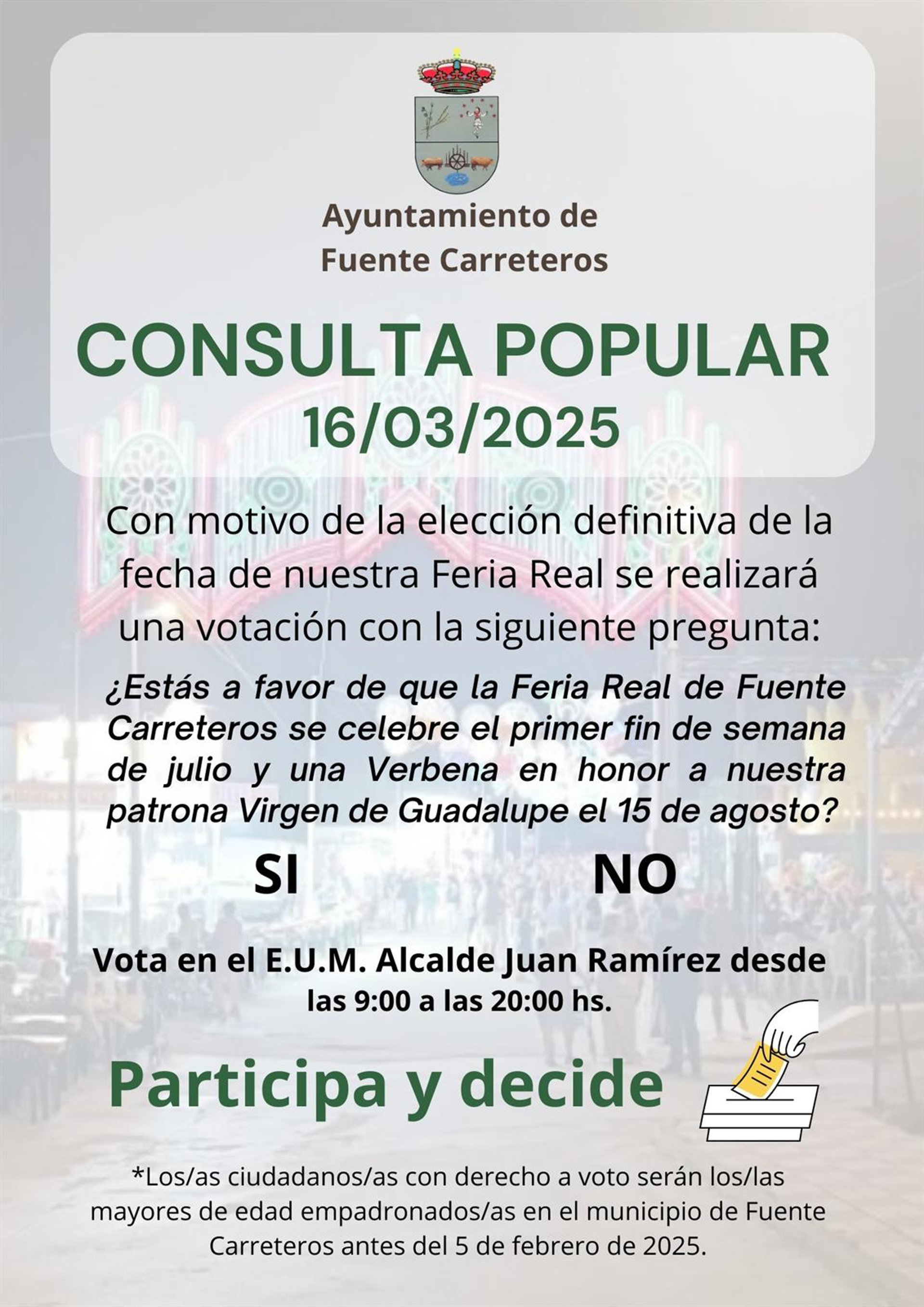 Imagen promocional de la consulta popular celebrada en Fuente Carreteros. - AYUNTAMIENTO DE FUENTE CARRETEROS