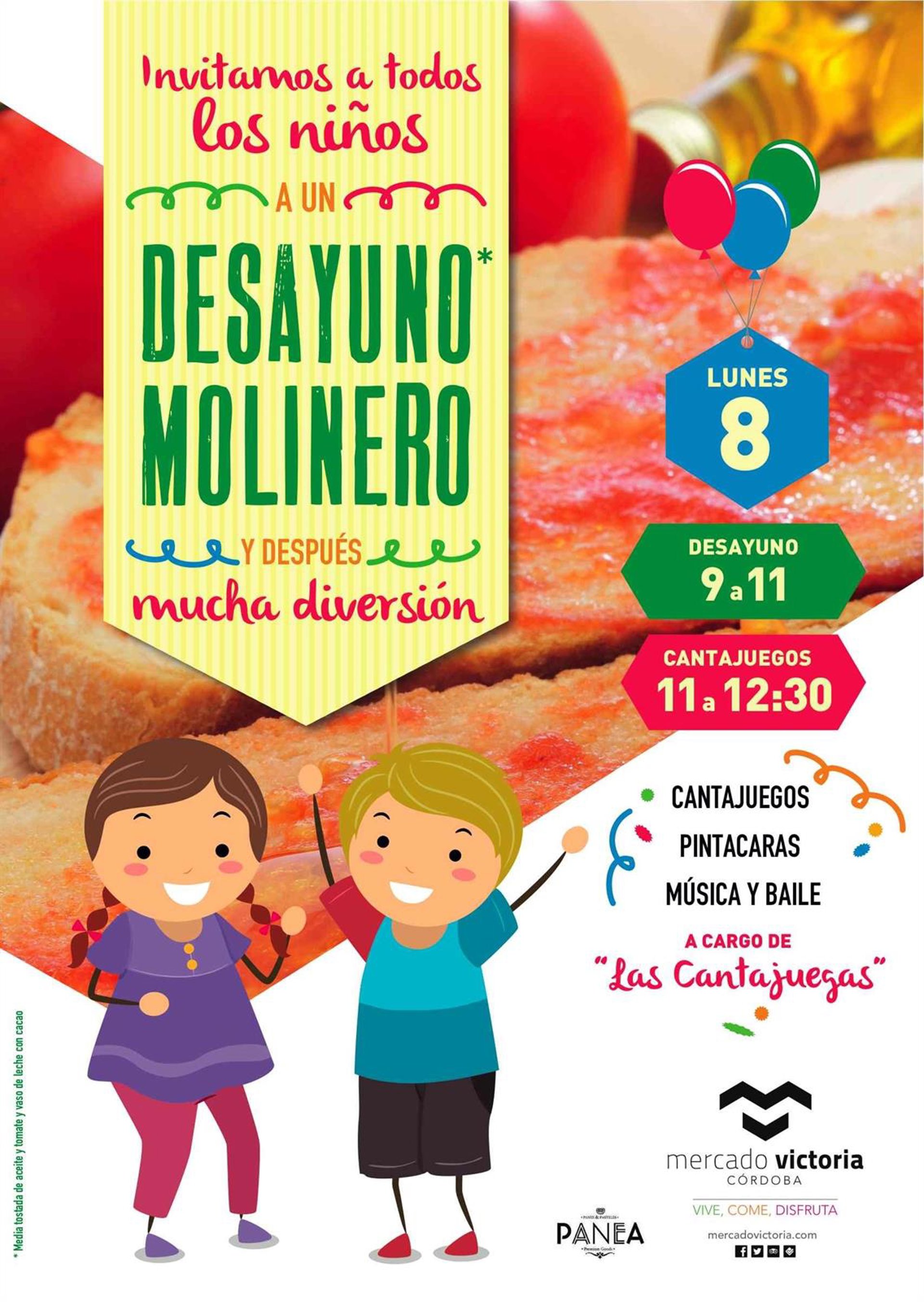 El Mercado Victoria de Córdoba dedica la mañana de este lunes 8 de septiembre al público infantil, invitando a los niños que acudan a su cafetería a un desayuno molinero y posteriormente a disfrutar de la actuación de un grupo de animación infantil.