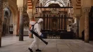 Un operario desinfecta el interior de la Mezquita-Catedral de Córdoba. - CABILDO CATEDRAL DE CÓRDOBA