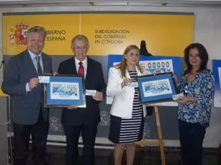 El motivo protagonista del sorteo de ese miércoles reproduce por la cara una imagen de la torre de la Mezquita-Catedral y el Puente Romano con su noria, y por el revés otro detalle del arco de herradura y decoración mocárabe de la fachada oeste de la mezquita catedral. Son cinco millones y medio de cupones los que llevan esta imagen de Córdoba a toda España a través de la red de ventas de la ONCE.