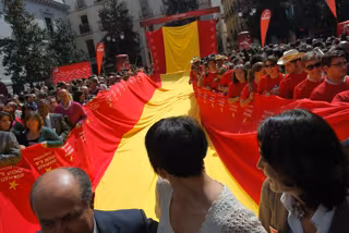 Miles de personas se han dado cita en la Plaza del Carmen de Granada para desplegar una bandera gigante de España, de unos 650 metros cuadrados, con la que se han desplazado hasta el Estadio de Los Cármenes en apoyo a la Selección Española de Fútbol, que disputará este viernes el partido clasificatorio para la Eurocopa 2012 que le enfrentará a la República Checa.