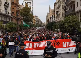 Miles de personas han participado en las manifestaciones convocadas por la Federación de Empresarios de Hostelería de Andalucía (Horeca) este jueves en todas las capitales andaluzas con el lema 'Sin ayudas nos arruinan', para protestar por la situación actual del sector tras las nuevas restricciones de horario y de actividad adoptadas para controlar la pandemia de coronavirus.