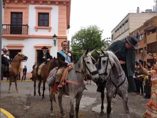 Antes de comenzar su camino, los peregrinos que van a caballo, presididos por los hermanos mayores de la Cofradía Matriz y acompañados por el alcalde de Andújar, Jesús Estrella, y el concejal de Festejos, Curro Martínez, han realizado el tradicional 'paseíllo' por las calles de la ciudad junto a la edil de Cultura, Delia Gómez, que ha hecho lo propio en jamuga, una forma tradicional de subir al cerro en mulo sobre un sillón de madera.