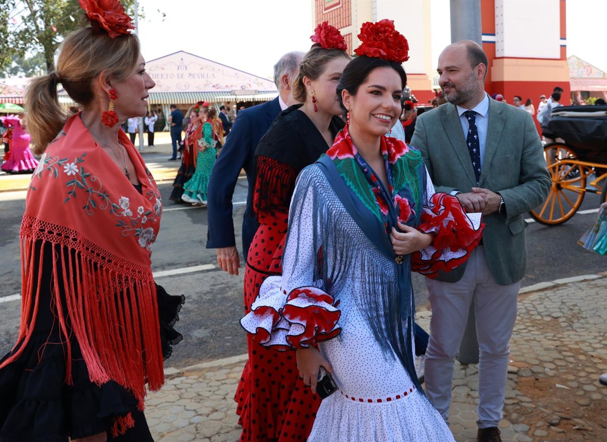 La portavoz de VOX en el Congreso, Pepa Millán, (i) a su llegada a la portada de la Feria de Abril acompañada por la concejal de VOX en el ayuntamiento de Sevilla, Cristina Peláez (2i), a 16 de abril de 2024, en Sevilla, Andalucía (España). Hoy, en este c - Rocío Ruz - Europa Press