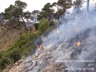 Durante toda la noche, han trabajado sobre un terreno de muy complicada orografía más de un centenar de efectivos del Infoca reforzados por grupos de intervención procedentes de Almería y de Córdoba. En lo que respecta a medios materiales terrestres están actuando dos vehículos autobomba, una unidad móvil de metereología y transmisiones y otra unidad médica de incendios forestales.