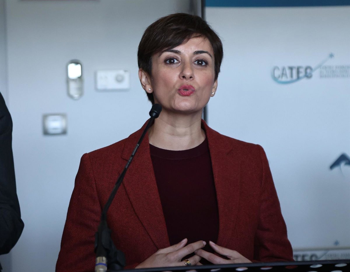 La ministra de Política Territorial y portavoz del Gobierno, Isabel Rodríguez, atiende a los medios en La Rinconada (Sevilla) durante una visita a la empresa Fada Catec. - JOAQUÍN CORCHERO (EUROPA PRESS)