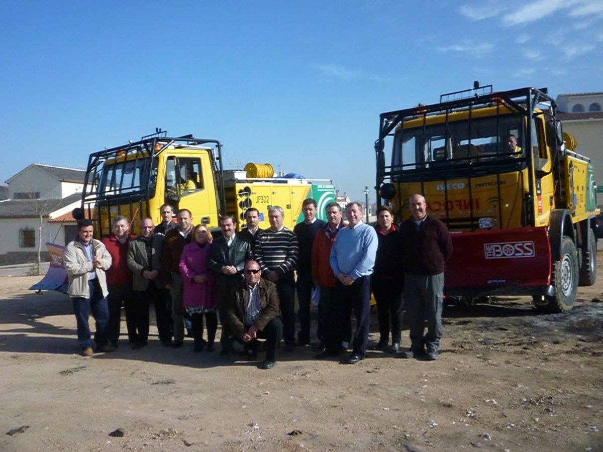 El delegado provincial de Medio Ambiente, José Castro, ha presentado este lunes a los alcaldes de la comarca de Segura los dos nuevos vehículos del dispositivo Infoca adaptados con palas quitanieves para hacer frente a situaciones de emergencia en caso de inclemencias meteorológicas.