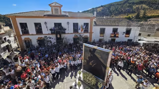 Más allá de la jornada central, las celebraciones por el Cristo del Paño comienzan mucho antes de la romería y este pasado domingo 28 de septiembre ya tuvo lugar la bajada de la imagen en la Iglesia de la Encarnación, junto al conocido Castillo de Moclín. Así los horquilleros del Santísimo Cristo del Paño bajaban el lienzo, que deja durante un mes su habitual ubicación (sobre el sagrario del templo) para quedar expuesto al público.