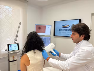 El doctor Leandro Martínez Pilar en atención a una paciente. - CLÍNICA DERMACENTER