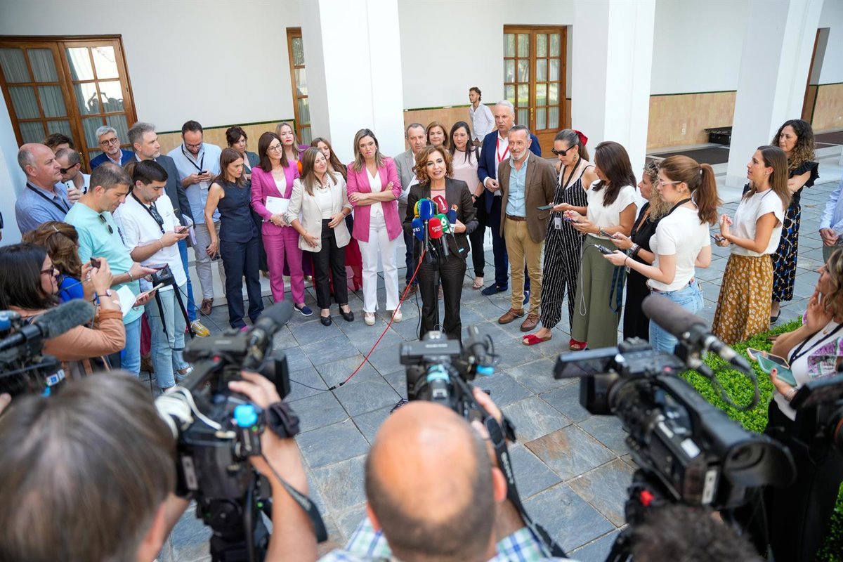 La secretaria general del PSOE-A, María Jesús Montero atiende a los medios de comunicación. A 29 de mayo de 2025 en Sevilla, Andalucía (España). La secretaria general del PSOE-A, María Jesús Montero, ha atendido a los medios en el Parlamento de Andalucía - Joaquin Corchero - Europa Press