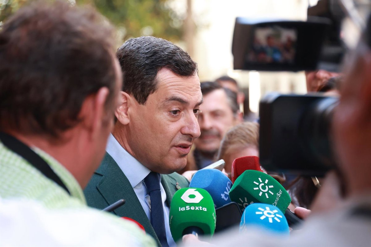 En declaraciones a los periodistas este jueves en el Parlamento, Juanma Moreno ha recalcado que "ayer se evidenció algo que ya sabíamos, que al final los grupos socios del gobierno han cedido una vez más al chantaje del propio Sánchez".