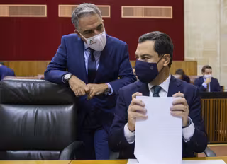 "Hoy, de nuevo, les pido su colaboración para un asunto de la máxima trascendencia como es llevar la voz unida de Andalucía a la Conferencia de Presidentes sobre la distribución de los importantes Fondos Europeos de Reconstrucción", según ha indicado Moreno ante el Pleno de la Cámara.