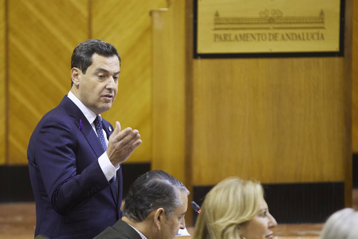 El presidente de la Junta de Andalucía, Juanma Moreno, este jueves en el Parlamento - Joaquin Corchero - Europa Press