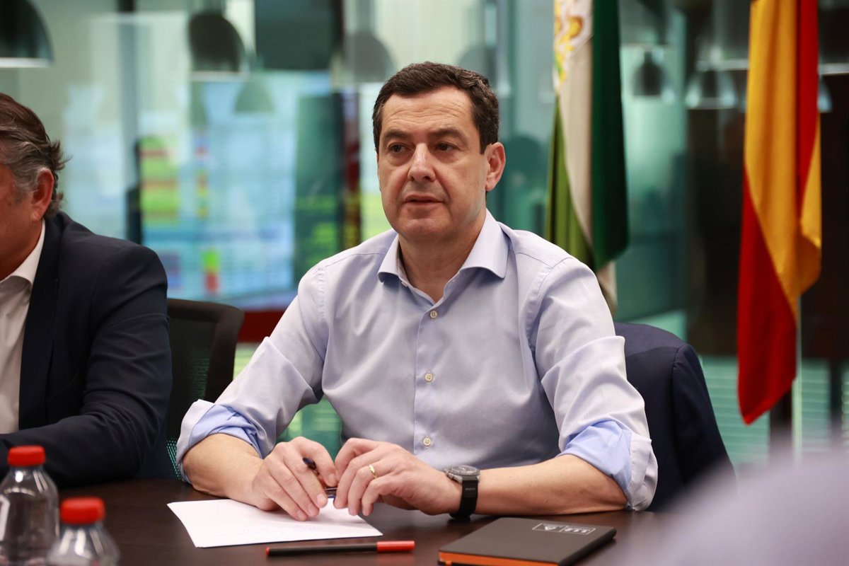 El presidente de la Junta de Andalucía, Juanma Moreno, preside la reunión del Comité Asesor del Plan de Emergencia de Andalucía por el apagón generalizado. A 28 de abril de 2025, en Sevilla (Foto de archivo). - Rocío Ruz - Europa Press
