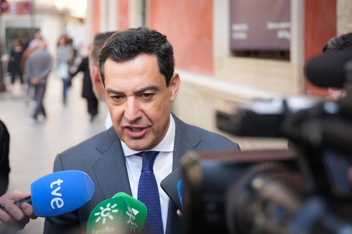 El presidente de la Junta de Andalucía, Juanma Moreno, atiende a los medios de comunicación en una foto de archivo. - María José López - Europa Press