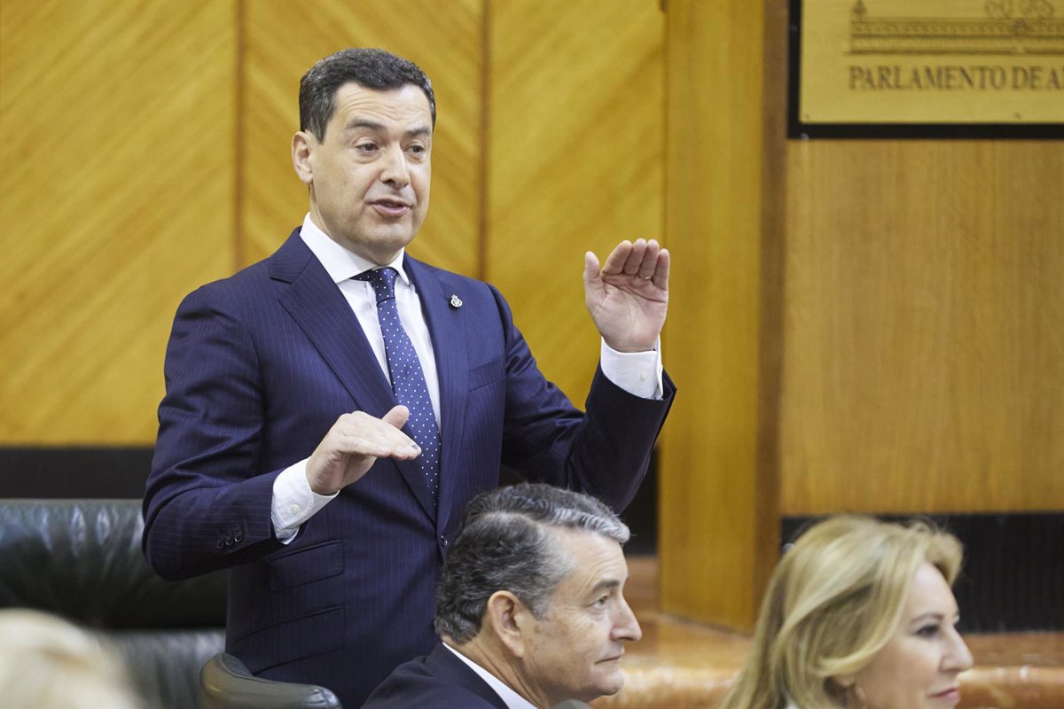 El presidente de la Junta, Juanma Moreno, ha defendido este jueves ante el Pleno del Parlamento que el PP-A ocupa la "centralidad del espacio político y social" de Andalucía y no tiene nada que ver ni está "al lado" de una izquierda "caduca", en referencia al PSOE, ni de una "derecha" como Vox que recurre a discursos "excesivamente antiguos y poco rigurosos".