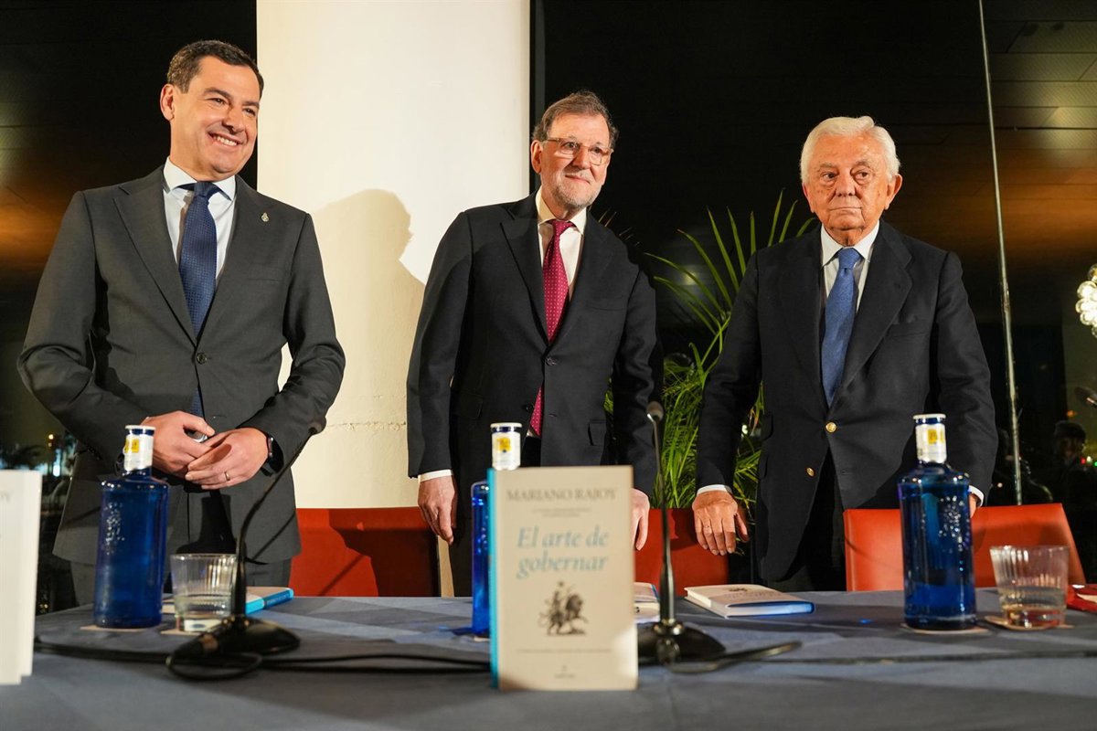 El presidente de la Junta de Andalucía, Juanma Moreno, ha destacado este miércoles en Sevilla alguna de las "lecciones" y "píldoras" que el expresidente del Gobierno y del PP Mariano Rajoy lanza en su libro 'El arte de gobernar', como el hecho de que, en la actualidad, el "problema no es la libertad de expresión", sino que es "la mentira".
