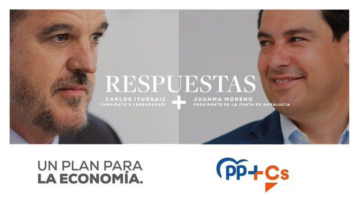 Moreno e Iturgaiz han participado en una sesión del ciclo 'Respuestas' del Partido Popular, durante la cual el presidente andaluz ha manifestado que todos los populares están ilusionados con el proyecto que representa el candidato a lehendakari, una persona "sólida, fiable e íntegra". "Ahora es más necesaria que nunca una persona como tú en el País Vasco", le ha dicho Moreno, quien ha apuntado que en esa comunidad sólo hay dos opciones "o más de lo mismo o un cambio hacia un futuro mucho mejor" de la mano de Iturgaiz.