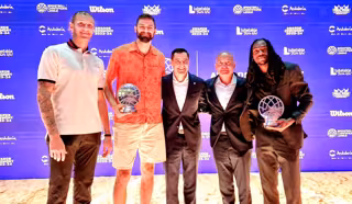 El presidente de la Junta de Andalucía, Juanma Moreno, ha participado este sábado en la ceremonia de entrega de premios de la Final Four de la Basketball Champions League en Belgrado, a la que ha asistido invitado por la FIBA y donde le ha hecho entrega del galardón al jugador del Unicaja, David Kravish, que junto con Kendrick Perry ha sido incluido en el mejor quinteto de la temporada.