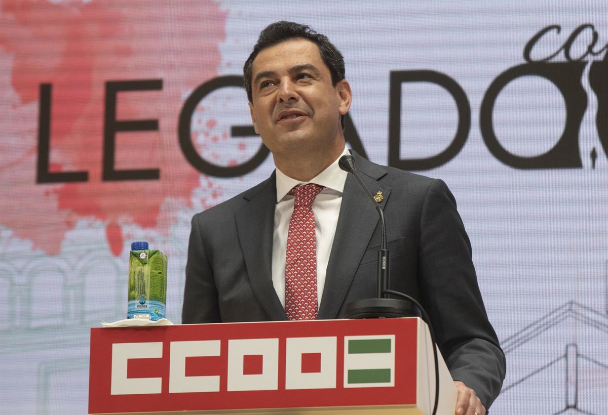 Moreno ha participado este jueves en el acto oficial de inauguración de la nueva sede de CCOO en Sevilla, en funcionamiento desde hace ya unos 14 meses, contexto en el que ha defendido el "clima de confianza abierto" entre su Ejecutivo autonómico, los sindicatos y la patronal, porque "sin diálogo social y sin paz social, no ha progreso posible".