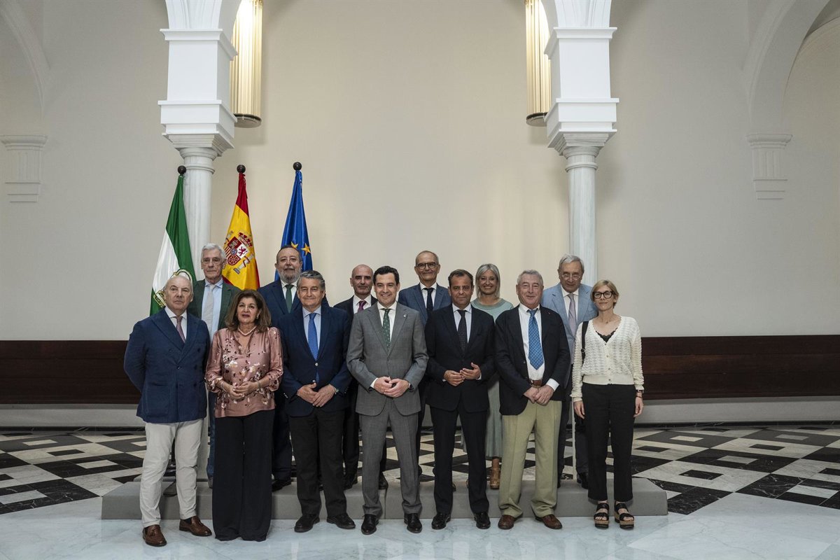 El presidente de la Junta de Andalucía, Juanma Moreno, ha destacado el sector audiovisual como un "pilar clave" para la región durante la recepción celebrada este miércoles en el Palacio de San Telmo a todos los directores de la Federación de Organismos de Radio y Televisiones Autonómicas (Forta), encabezados por Juande Mellado, presidente de turno de la Federación y director general de RTVA. El acto ha contado también con la presencia del consejero de Presidencia, Interior, Diálogo Social y Simplificación Administrativa, Antonio Sanz.