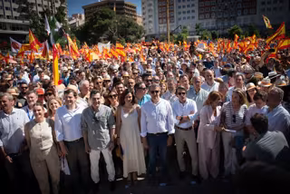 El PP-A, también en sus redes sociales, afirma que 100.000 españoles han salido a las calles "a defender la democracia ante los escándalos de Sánchez". Se trata de una "concentración histórica" en Madrid "en la que participa nuestro presidente", en alusión directa a Juanma Moreno.