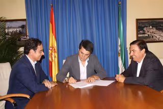 El alcalde de Motril (Granada), Carlos Rojas (PP), ha firmado este lunes el manifiesto promovido por los empresarios para exigir que el Corredor Ferroviario Mediterráneo pase por la ciudad costera, acompañado por el presidente de la Cámara de Comercio, Ángel Gijón, y el presidente de Aecost, Julio Rodríguez.