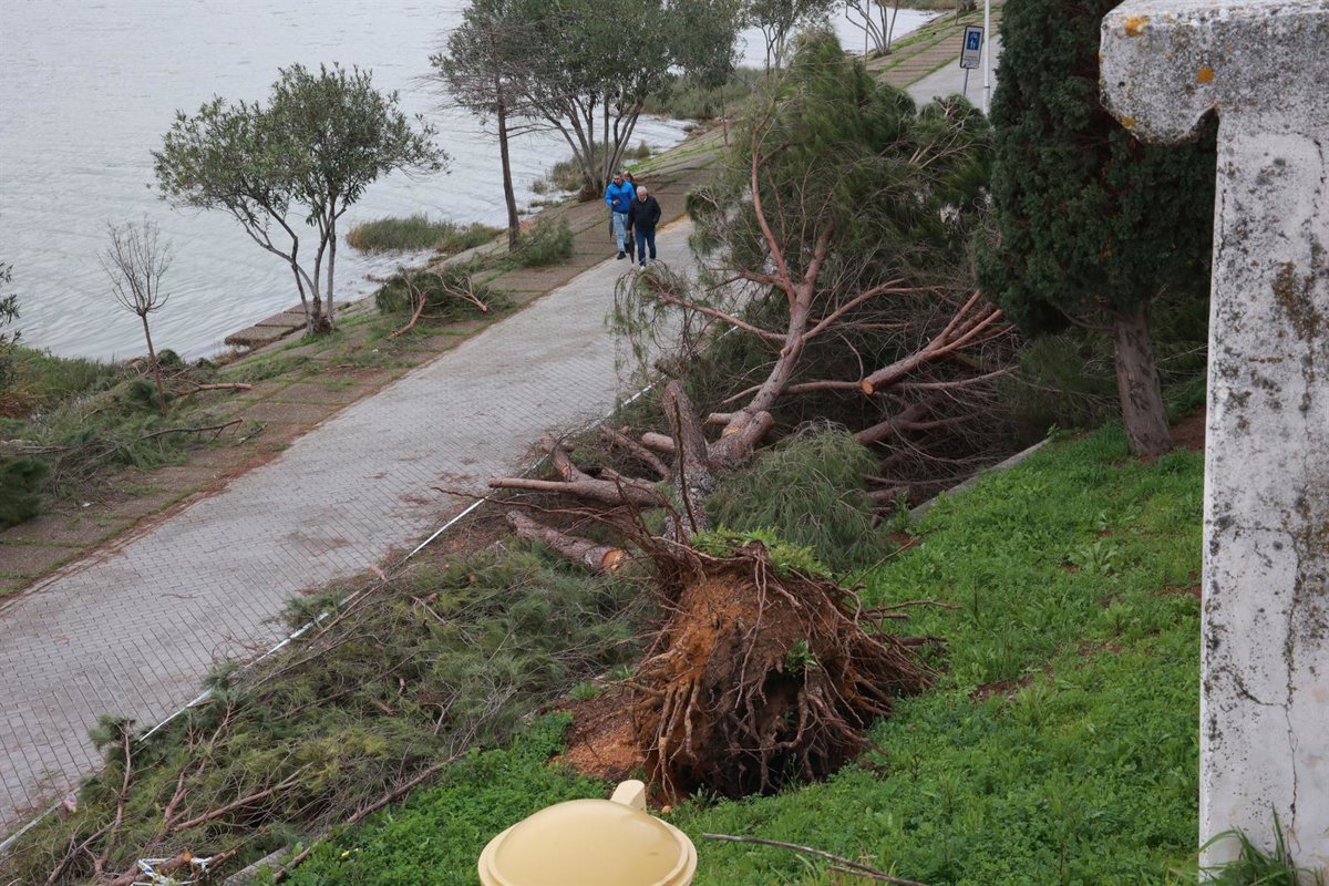 Restos de árboles caídos permanecen aún en el Paseo Juan Carlos I de Sevilla tras el tren de borrascas que ha azotado en las últimas semanas a la comunidad andaluza. A 11 de febrero de 2026 en Sevilla (Andalucía, España). - Rocío Ruz - Europa Press