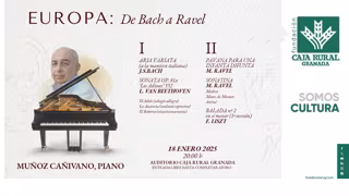 El pianista Juan José Muñoz Cañivano comienza su temporada en el Auditorio Fundación Caja Rural Granada y la institución ha organizado un concierto gratuito el próximo sábado 18 de enero a las 20,00 horas titulado 'Europa: de Bach a Ravel' con entrada libre hasta completar aforo.