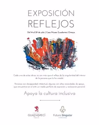 La Casa Museo Guadamecí Omeya y la Fundación Futuro Singular Córdoba organizan la exposición 'Reflejos', en el marco de "una firma apuesta por la cultura inclusiva", ya que la muestra, que se podrá visitar en la citada casa museo del 14 al 19 de julio, está formada íntegramente por obras realizadas por personas con discapacidad intelectual, a las que la fundación presta apoyo, reconociendo así la capacidad de todas las personas para expresarnos a través del arte.