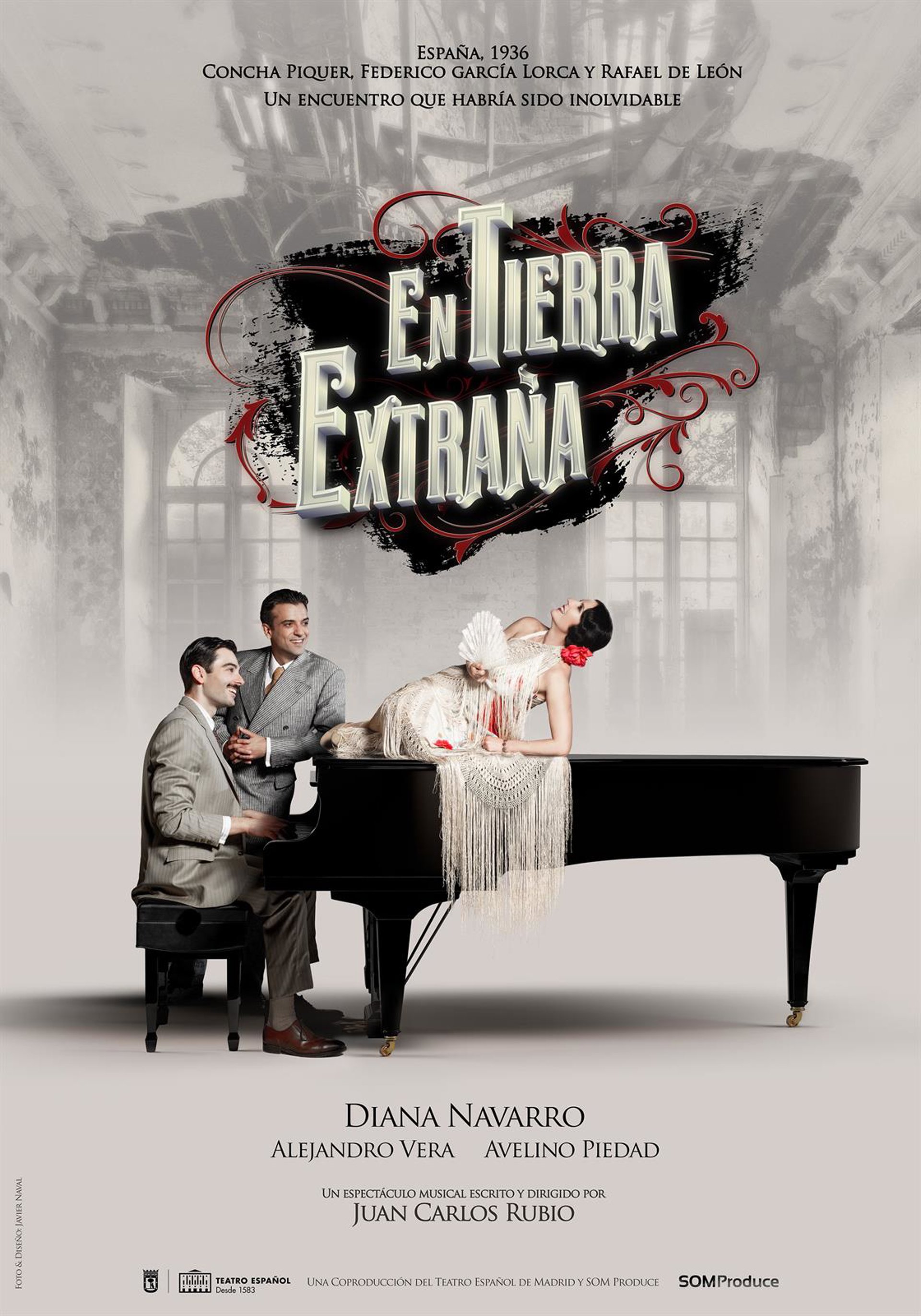 El Gran Teatro de Córdoba acoge este sábado la comedia musical 'En tierra extraña', un musical escrito y dirigido por Juan Carlos Rubio que inundará de copla el patio de butacas para contar cómo habría sido el encuentro ficticio entre la famosa tonadillera Concha Piquer, el poeta Federico García Lorca y el compositor Rafael de León, interpretados respectivamente por Diana Navarro, Alejandro Vera y Avelino Piedad.