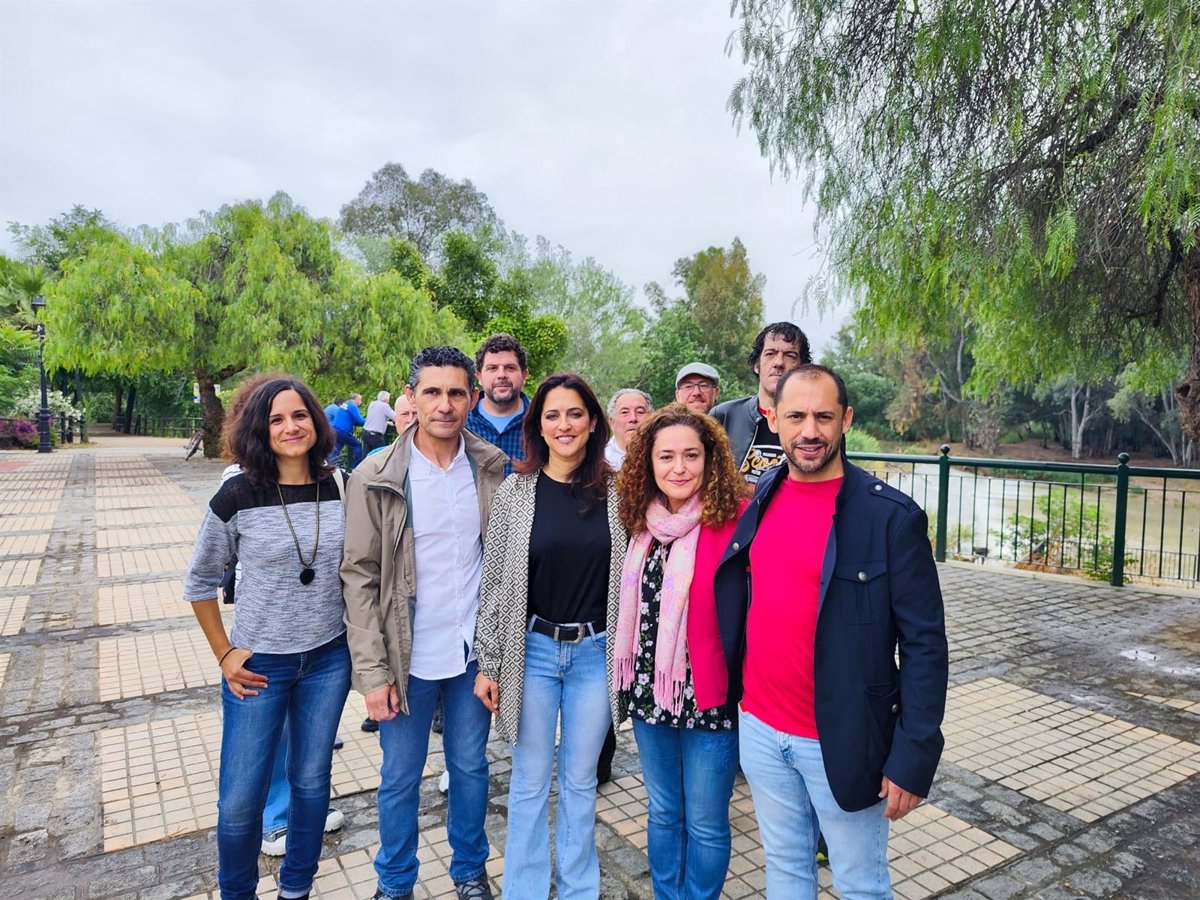 Ana Ramos (centro), con Inmaculada Nieto y Sebastián Pérez (dcha.) y otros miembros de la candidatura de IU en Palma del Río. - IU