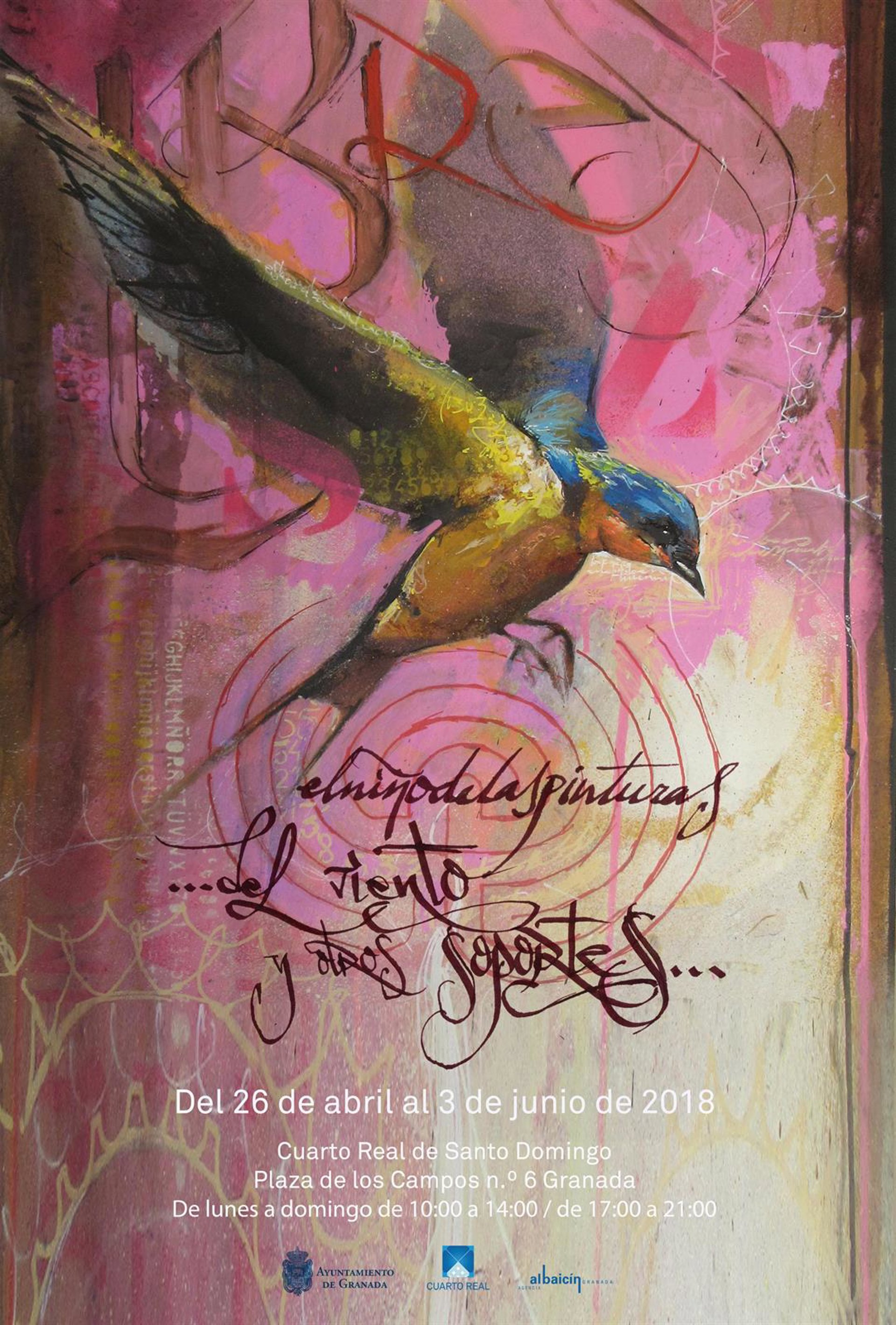 La nueva exposición del grafitero El Niño de las Pinturas, 'Del viento y otros soportes', podrá verse en el Cuarto Real de Santo Domingo, en el barrio del Realejo de Granada capital, del 26 de abril al 3 de junio de 2018.