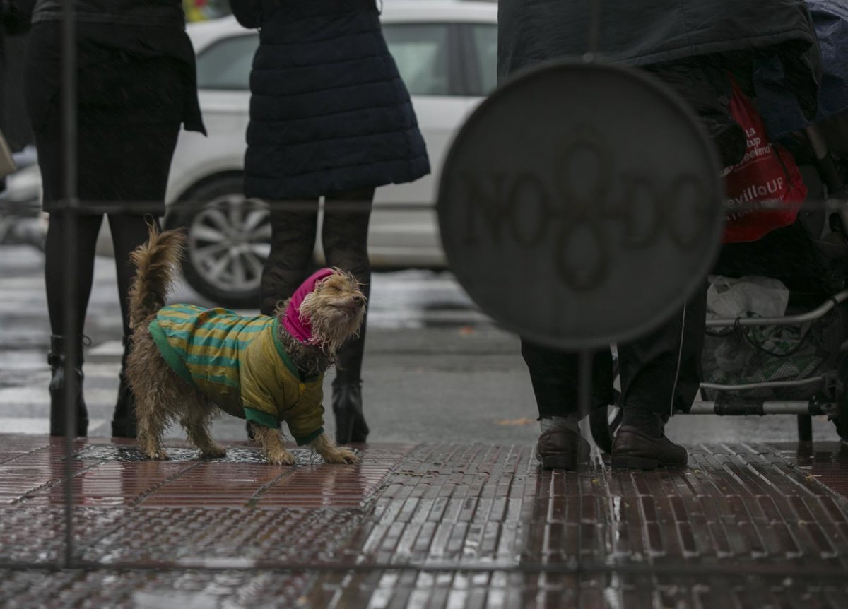 Un perro se sacude el agua durante la borrasca 'Elsa'. En Sevilla, a 19 de diciembre de 2019. - María José López - Europa Press - Archivo