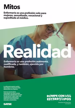 Bajo el lema 'Rompe con los estereotipos', la nueva campaña de Satse, que contempla la distribución en Andalucía de más 3.000 carteles y 42.000 folletos en los distintos centros de salud y hospitales, se está difundiendo también desde el mes de abril a través de vídeos, redes sociales y medios 'on line', entre otros.