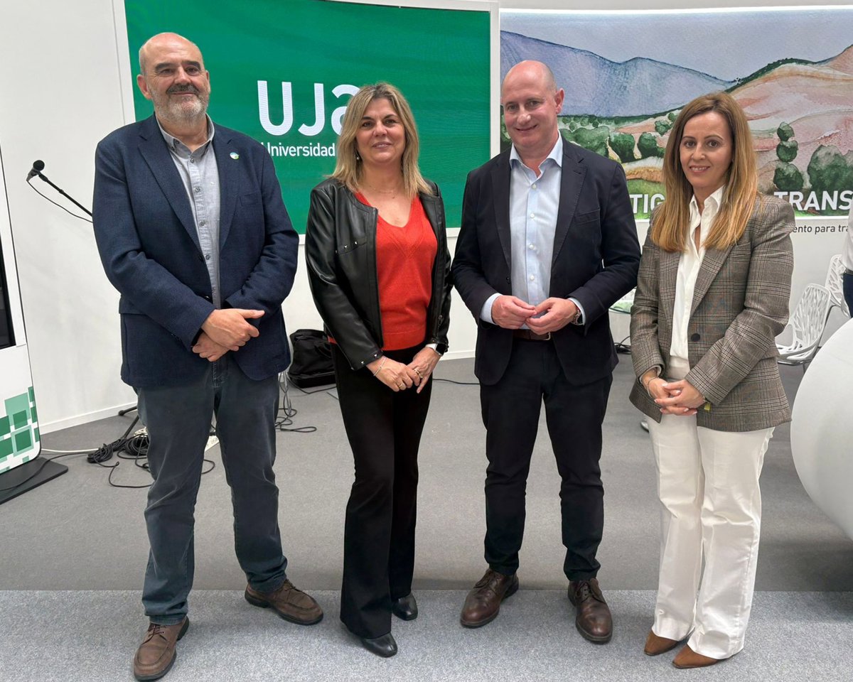 El estand de la Universidad de Jaén en la XXII Feria Internacional del Olivar e Industrias Afines, Expoliva 2025, ha acogido el acto, que ha contado con la vicerrectora de Investigación y Transferencia del Conocmiento, María Victoria López; el diputado de Servicios Municipales, José Luis Hidalgo; la investigadora de la UJA Eva María Murgado, y el delegado de SEO/BirdLife en Andalucía y coordinador del proyecto, José Eugenio Gutiérrez.